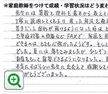夏休みから先生に来て頂き、初めに教え方の上手さに驚きました。偏差値は10月末には10~13上がりました。